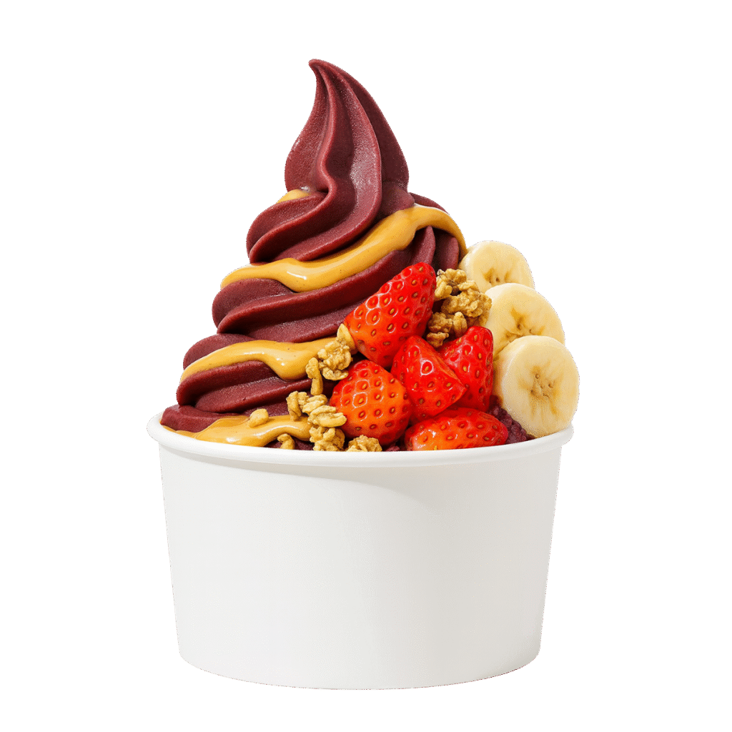A nutrient-rich, chilled acai blend served in a bowl with customisable premium toppings, perfect for a health-conscious touch.