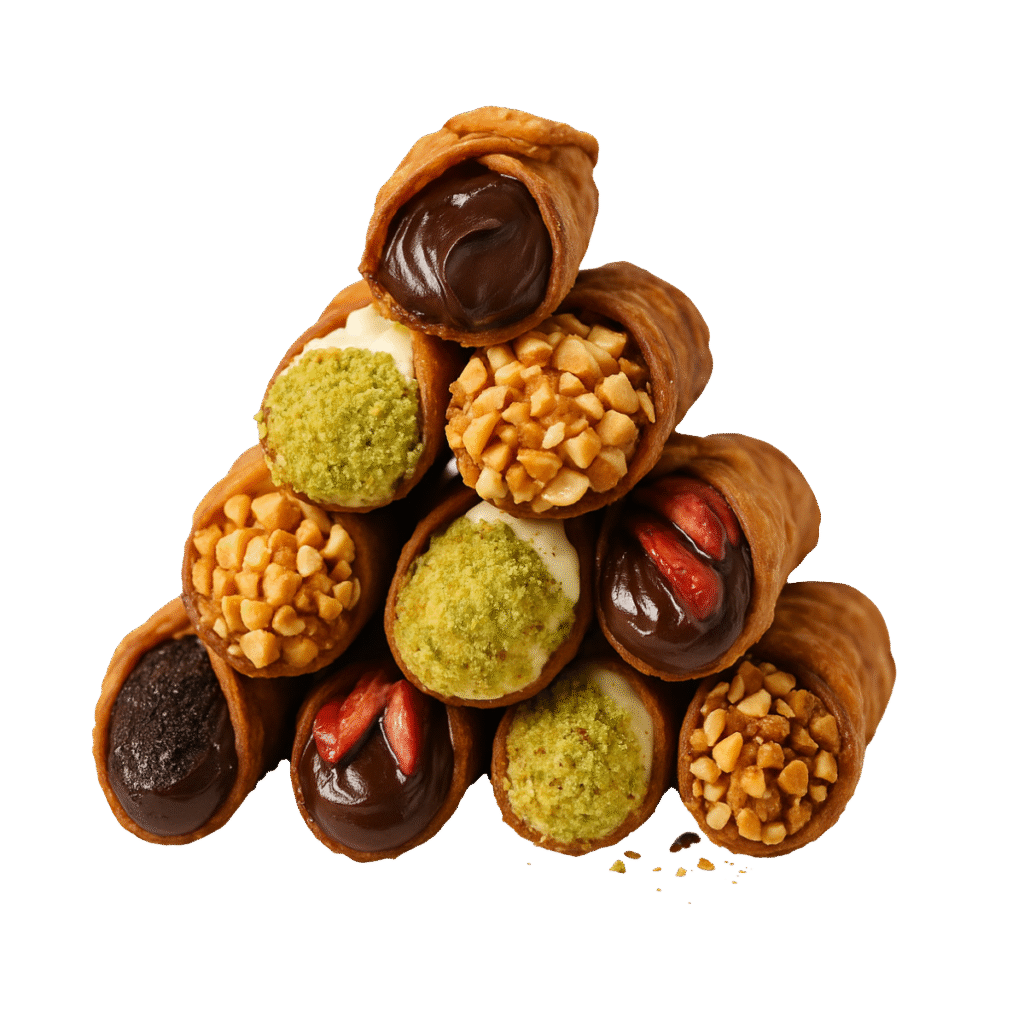 From classic favourites to vibrant twists like ube, matcha, pistachio, pandan, red velvet, and strawberry with melted chocolate, each cannoli is crafted to delight and impress.