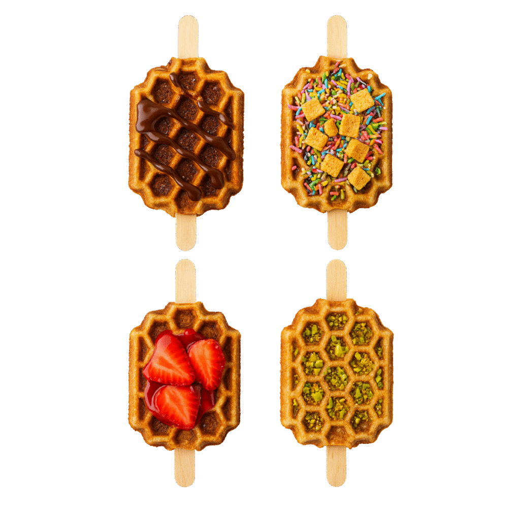 Our signature golden waffle sticks are a handheld twist on a classic favourite crisp on the outside, fluffy on the inside, and easy to enjoy on the go. Served warm and drizzled, dipped, or dusted to your delight, each stick is crafted for flavour, fun and corporate luxe topped to suit any taste.